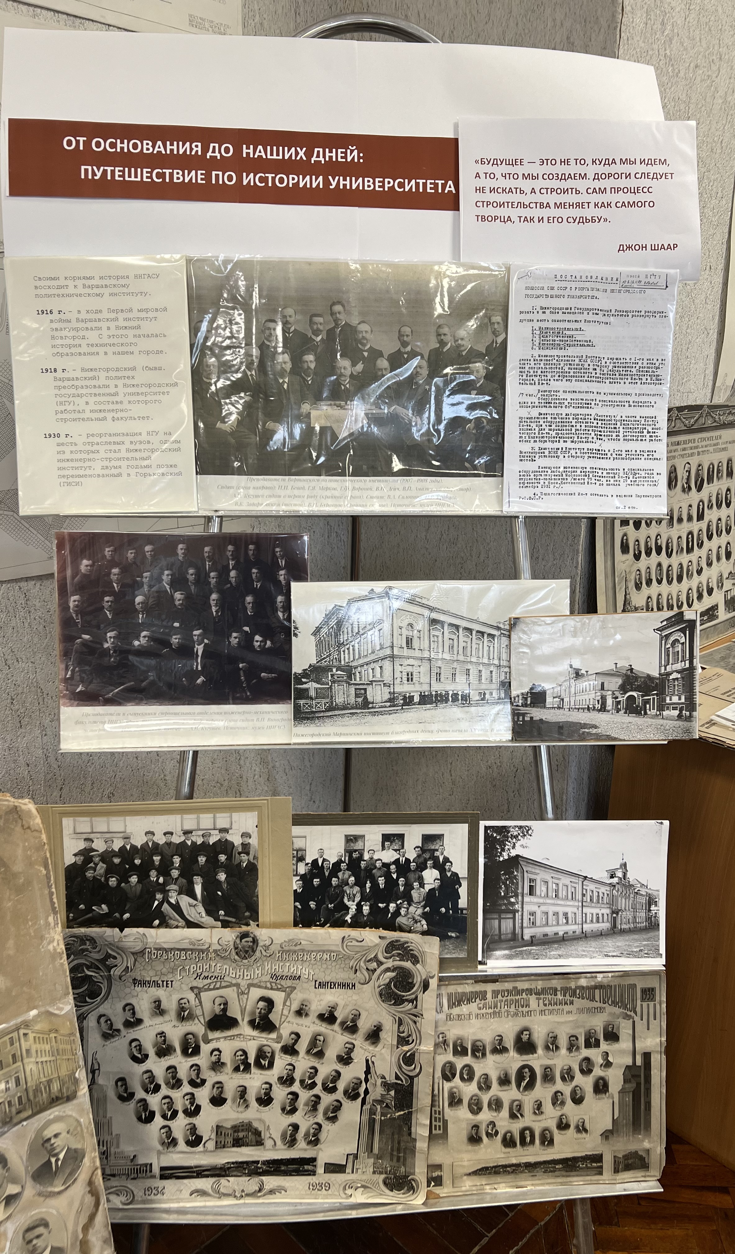 С 8 октября в выставочном зале библиотеки будет работать выставка «От основания до наших дней: путешествие по истории университета», посвященная юбилею вуза. Экспозиция основана на материалах музея ННГАСУ. Приглашаем всех желающих.